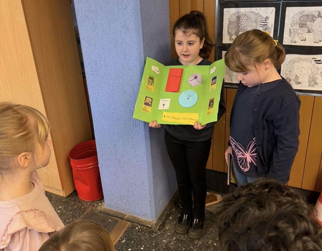 wir sind die Giraffenklasse. Zusammen mit unserer Klassenlehrerin Frau Rentrop lernen, lachen und spielen wir im 1.OG des Nebengebäudes.