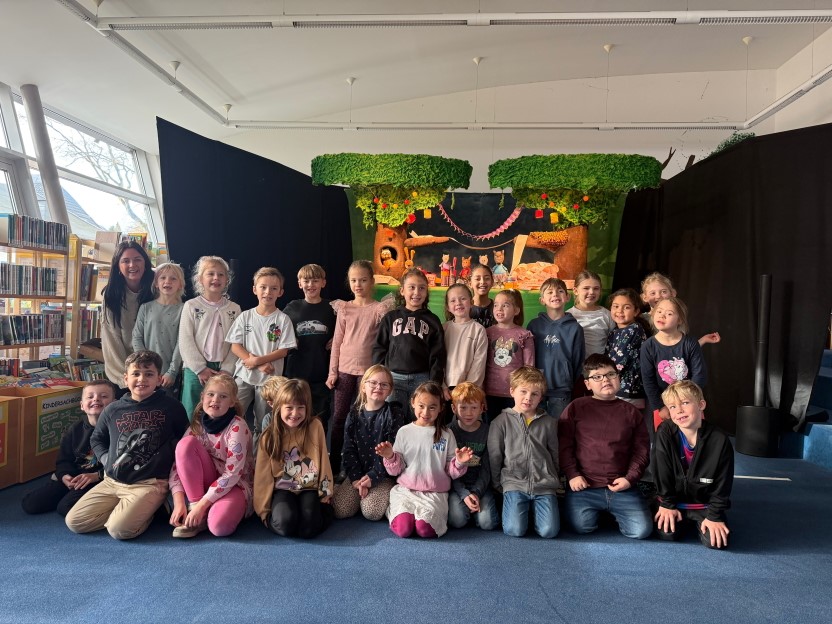 Die Klasse 2c besuchte die Stadtbibliothek Brackel und sah das Theaterstück „Der kleine Rabe Socke – Alles erlaubt?“